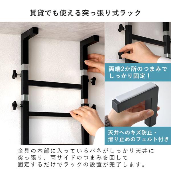 ランドリーラック バスケット 2個付き 突っ張り 棚2段 おしゃれ