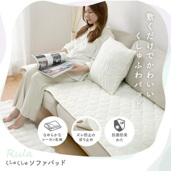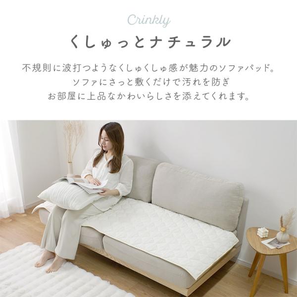 ソファパッド ソファカバー 3人掛け 2人掛け 65×180cm 長方形 くしゅくしゅ キルティング レーヨン さらさら 北欧 かわいい 抗菌 防臭 春 夏 秋 シンプル ナチュラル 韓国 おしゃれ 白 ホワイト グレー ベージュ ソファー 敷きパッド カバー 洗える 滑り止め 新生活