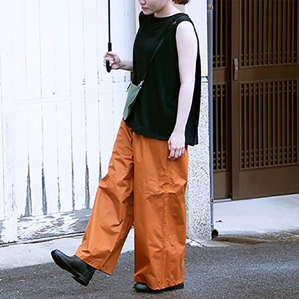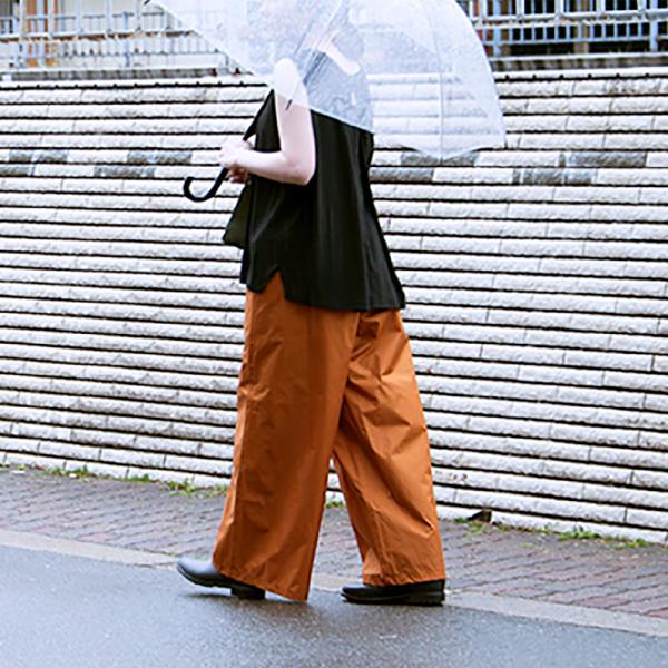 重ね着できるレインパンツ。雨の日でも好きな服が着られる。