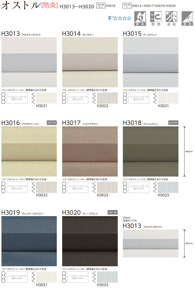 商品名:ハニカムスクリーン レフィーナ オストル 防炎 H3013〜H3020