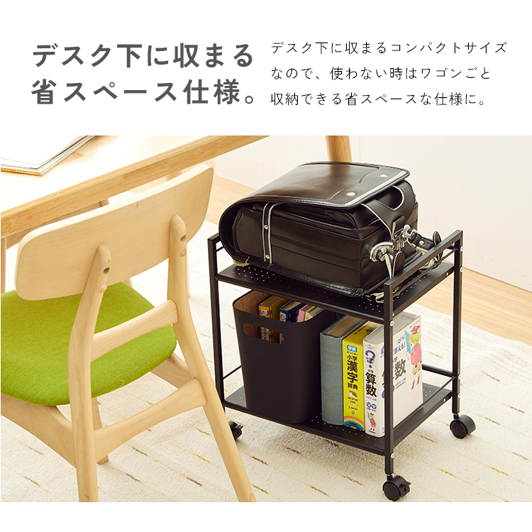 ランドセルの専用置場として使用できるミニワゴン。