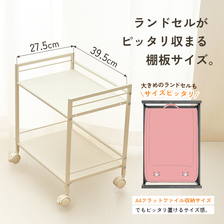 ランドセルラック ランドセル収納 幅40 2段 クローゼット収納 すきま収納 ラック ワゴン 頑丈 収納棚 キャスター付 パンチングラック キャスター GC-P46