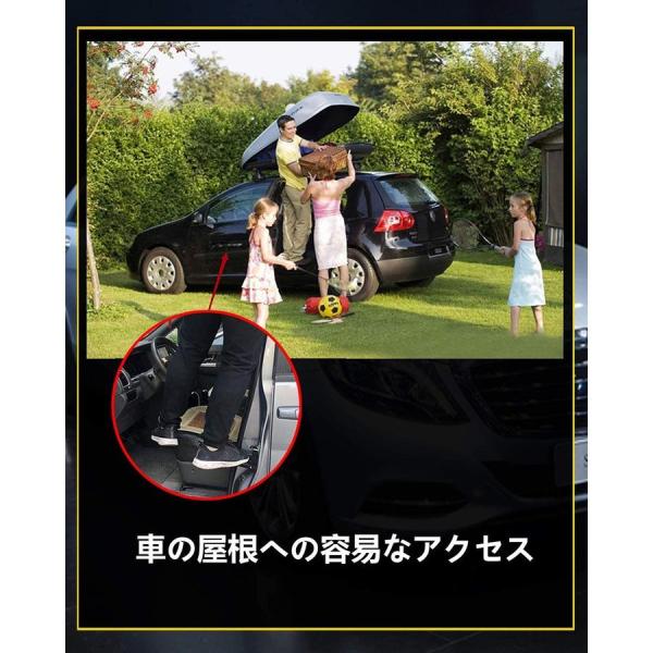 【多機能】あらゆる種類のSUVまたはRVに対応しています。ドアストライカーが付いているSUV、CAR、Jeep、Minivanなど、ほとんどの車種でご利用いただけます。車のルーフに荷物を置いたり、取ったりすることを楽にできます。洗車用品として、ルーフを洗うことや拭うことにもよく役立ちます。良い旅行をに楽しむことができます。また、タイヤストッパー、安全カッター、電話スタンドとしても使用できます。