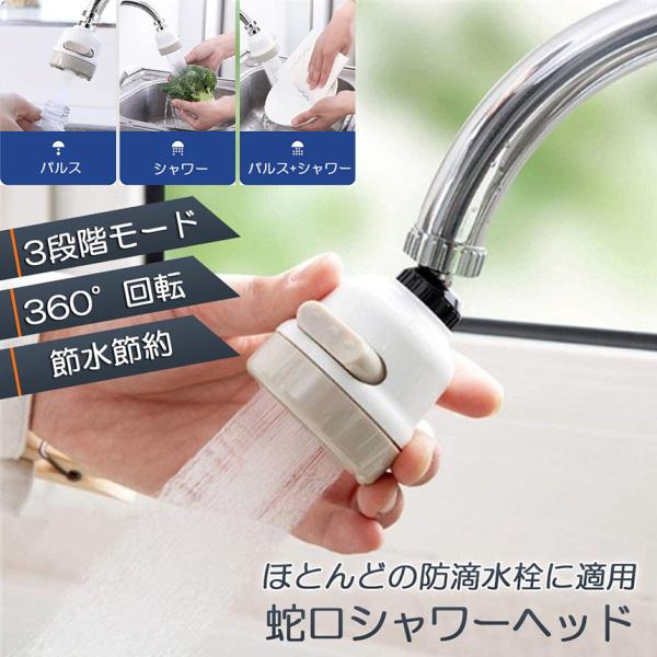 蛇口シャワー キッチン蛇口 キッチンシャワーヘッド 蛇口に取り付けるだけ 節水 ノズル 首振り 3つモード 台所 360度回転 流し 水道 水