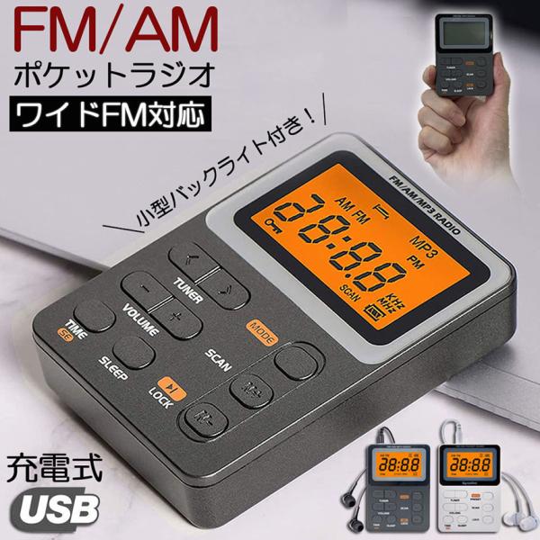 ポケット ラジオ ポータブル ワイドFM FM AM 充電式 ミニーラジオ 小型ラジオ 携帯ラジオ 通勤ラジオ 防災ラジオ イヤホン 小型 軽量