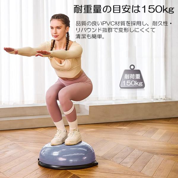 【素材】丈夫なABS素材の2.5mmボードサイド&6本ゴムの足座により、バランスドームが力を均等に負担し、安定のベースの内部が凹面デザインを採用し、踏み込むことによる不安定現象を避け、筋トレしっかりとしたサポート