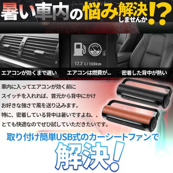 車用シートファン 扇風機 2色 ブラック ブラウン USB ヘッドレスト コンパクト 3段階風量調節 車載 送風機 シートクーラー 背中 首もと
