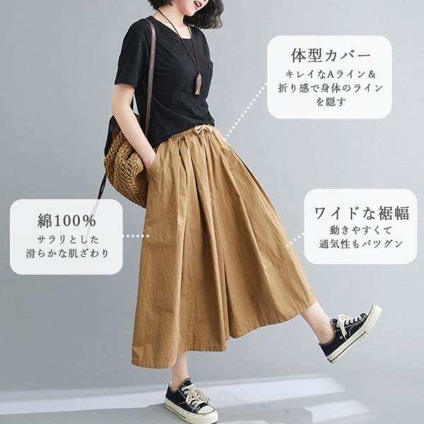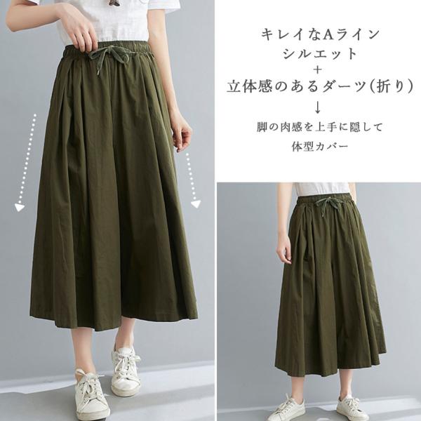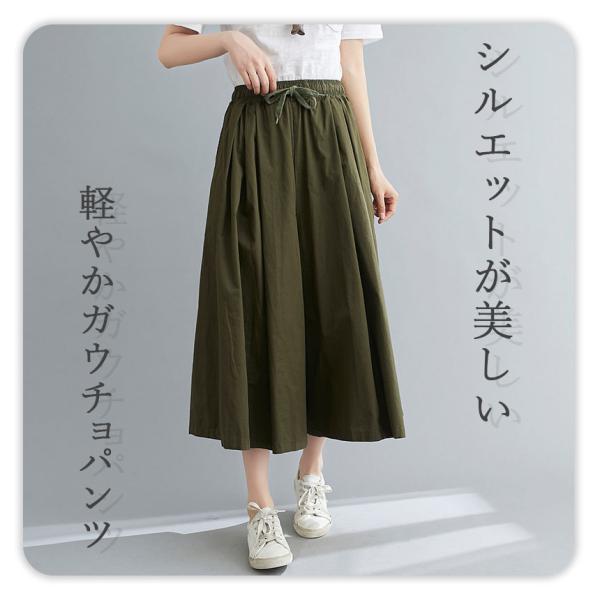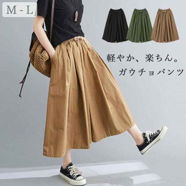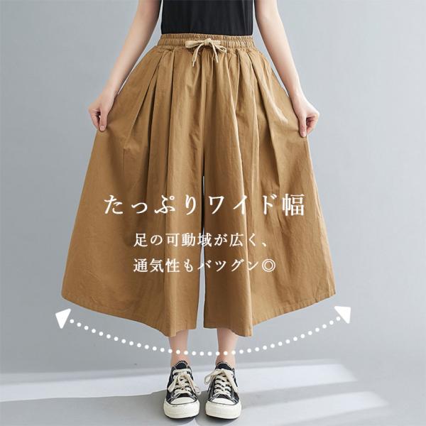 ガウチョパンツ 3色選べる ワイドパンツ キュロット パンツ 春 夏 ブラック カーキ ブラウン 綿100% コットン スカーチョ スカンツ 体