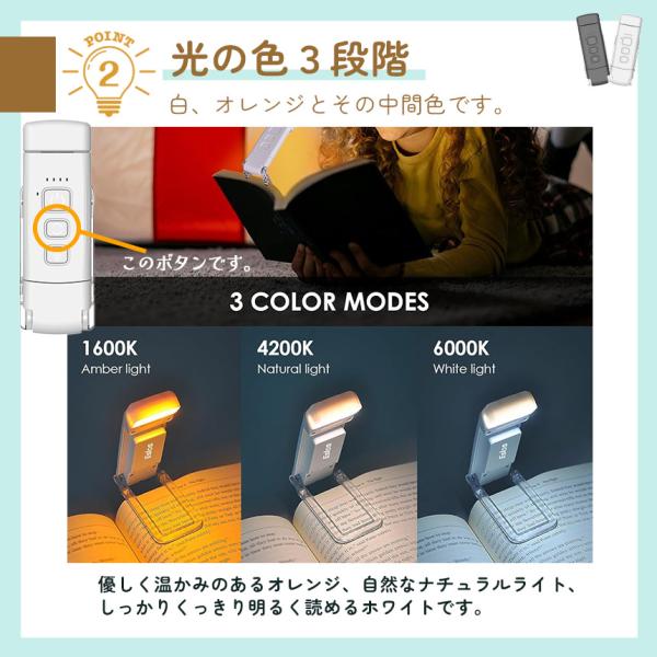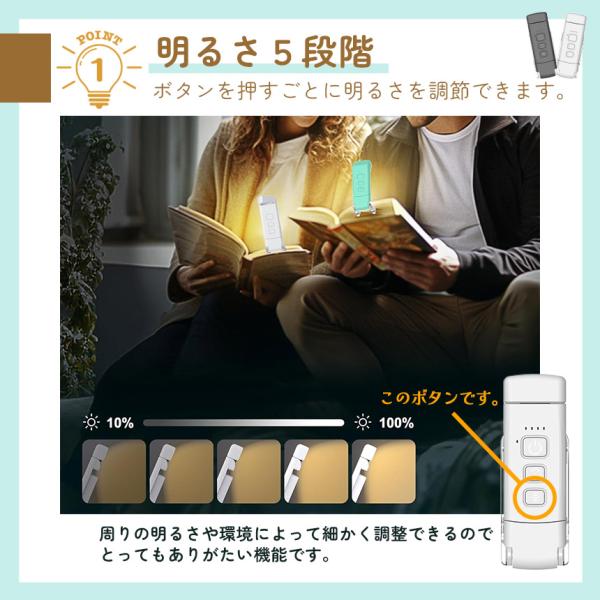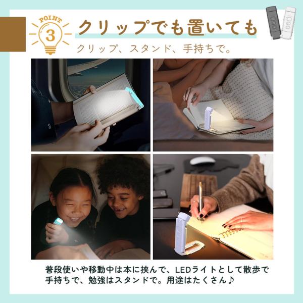 ブックライト 読書ライト 目に優しい 読書灯 クリップライト 読書 充電式 LED 5段階調光 色温度3種 ポータブル クリップ 明るさ調整