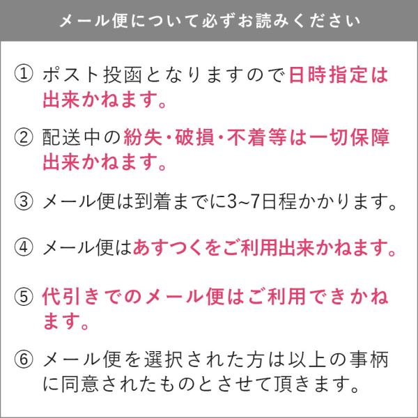 メール便のみ送料無料の為、配送方法が『メール便』しかご選択できません。