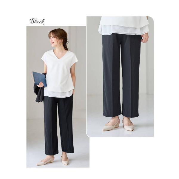 マタニティ パンツ セミワイド オフィス フォーマル センタープレス ブラック ベージュ グリーン チャコール M L 無地 妊婦服 エンジェリーベ