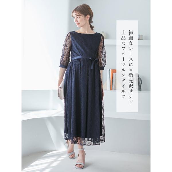 総レースロングワンピース(サテンリボンベルト付) マタニティ・授乳服【出産後も長く使える】