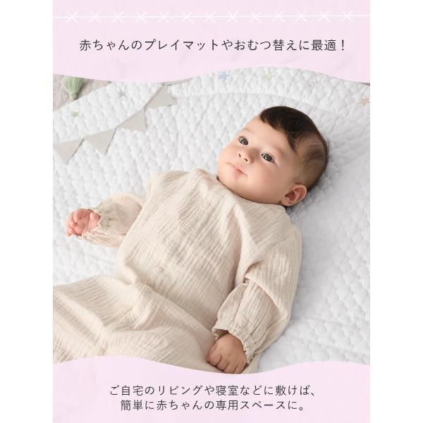 お昼寝やオムツ替え、プレイマットと用途も多彩です。ご家庭でお洗濯出来るのでお手入れも簡単。(※手洗い可)