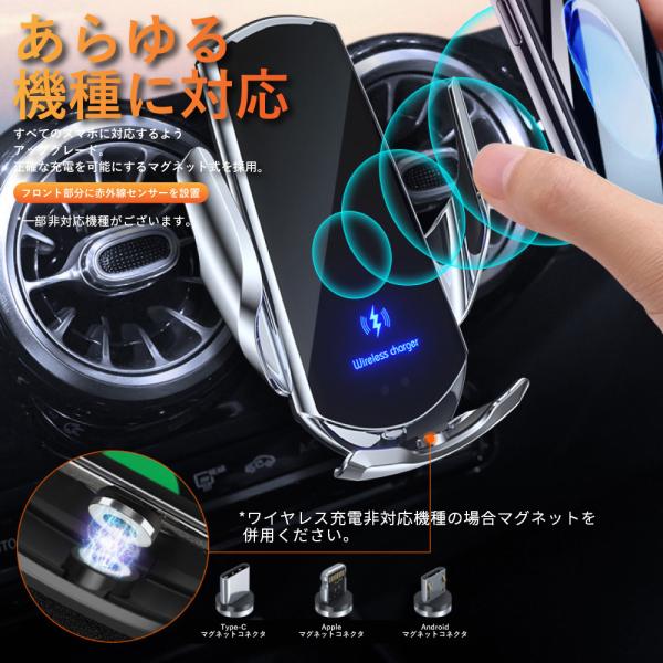 スマホホルダー 車 充電 車載ホルダー ワイヤレス充電器 スマホスタンド エアコン Qi iphone アンドロイド