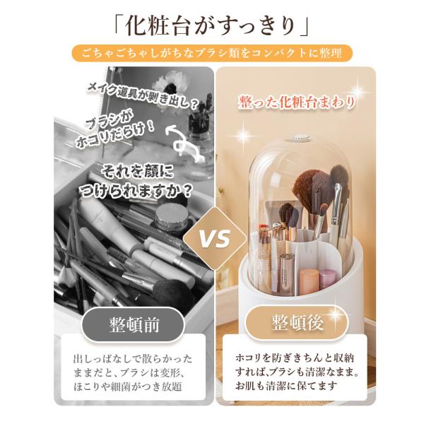 化粧台、ドレッサーの上がすっきりしてメイクブラシが探しやすい、360度回転のメイクブラシスタンド
