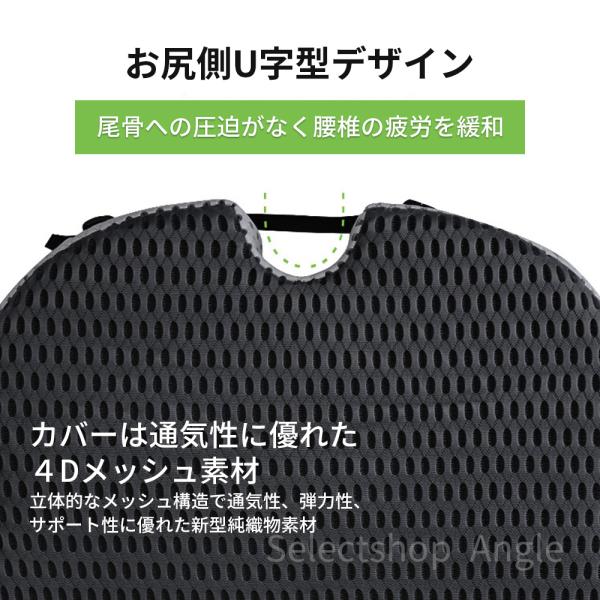 クッションの裏面には滑り止めシリコンが付いていて、シートや椅子に取り付け可能なベルトがついているので、クッションが固定され快適に使用できます。
