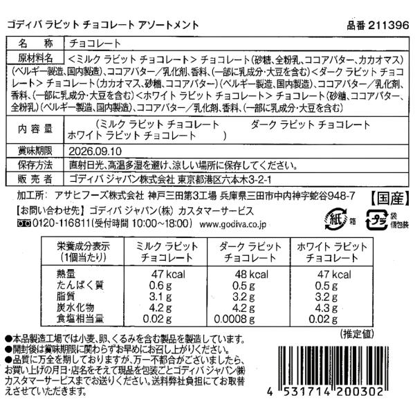 ホワイトデー ゴディバ GODIVA ラビット アソートメント チョコレート 3種 9個 バレンタイン 小分け お試し ポイント消化 爆買