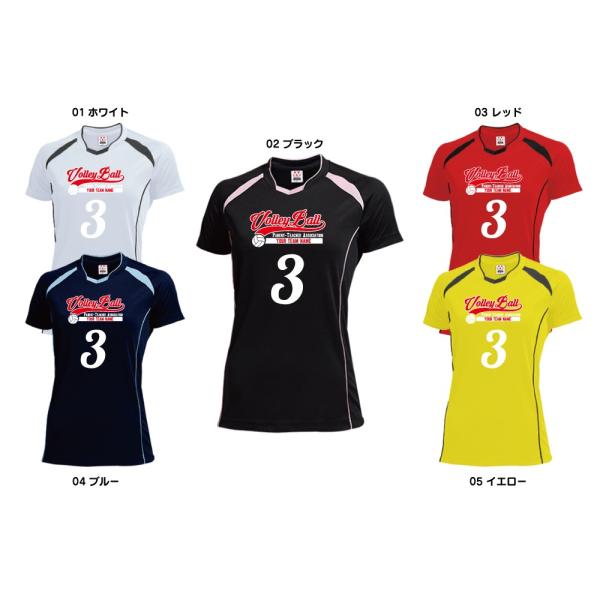 【名入れ】PTA バレーボール ユニフォーム トップス レディース チーム オリジナル 背番号 チーム名 ホワイト ブラック ネイビー レッド イエロー