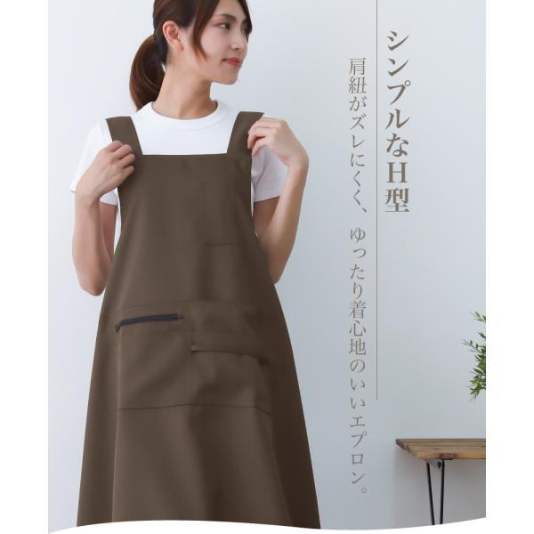 ファスナーポケット付きH型エプロン カバーエプロン 皺にならない ファスナー付 おしゃれ かわいい ナチュラル ギフト プレゼント 【N】【M】