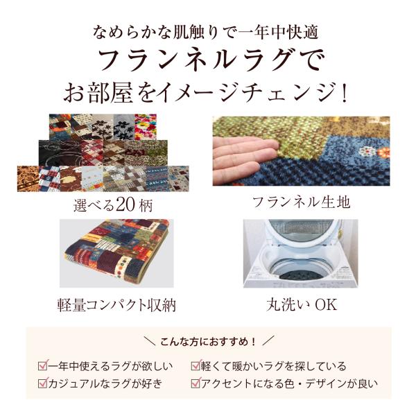 特徴: あったか素材のフランネルラグ ウォッシャブル ノンスリップ付き