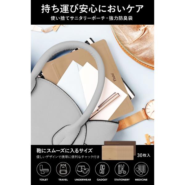Fluto 強力防臭袋 チャック付き サニタリーポーチ エチケットケース 生理用品 使い捨て 携帯用 ゴミ袋 消臭袋 ハンカチ 子供 Sサイズ ナチュラル 30枚入