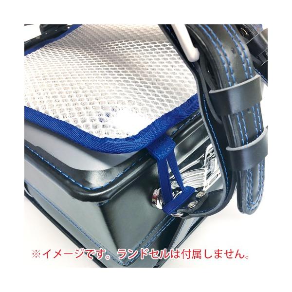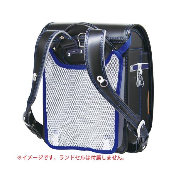 ランドセル用の背当てパッド。夏など暑い時に、ランドセルが背中に密着していると汗を書いて衣類もランドセルも湿ってしまったりします。当製品を使用すると、ランドセルと背中の間に立体メッシュによる空間を作り、通気性を良くすることで快適にランドセルを背負う事ができます。