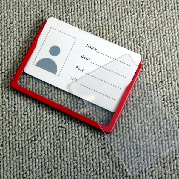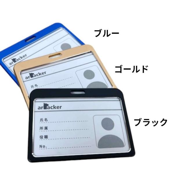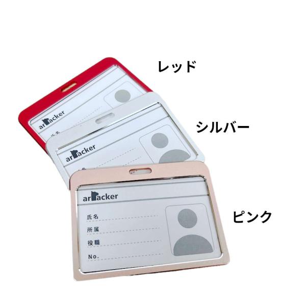 金属製のフレームで、壊れにくいID・名刺カードホルダー。デザインは横型でカラーは6色。ブルー、ブラック、ゴールド、ピンク、レッド、シルバーがあります。