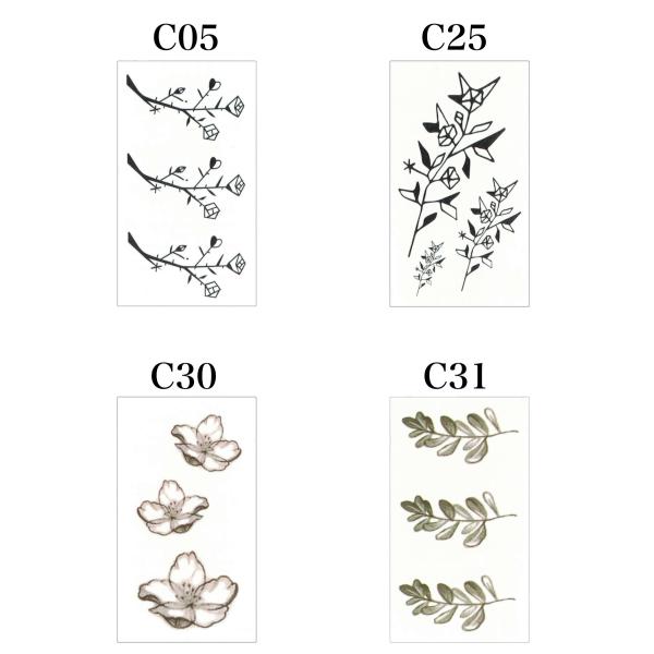 【在庫限り】2枚入+おまけ1枚付。単色ながらもインパクトのある花柄タトゥーシール全20種。 TATOOシール ボディシール フェイスシール フェス イベント ライブ