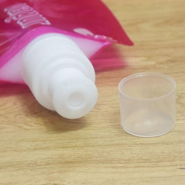 また、凍結による変形や破損がないので暑い季節は飲料を入れて凍らせられます。お弁当と一緒に入れて保冷剤がわりにすれば、お昼には飲みごろになり、帰るころには重さもスペースも削減できます。飲みものは20mmの口から入れます。飲み口は、スポーツドリンクタイプで、口をひっぱりロックを外します。衛生的な透明の飲み口カバーもついています。