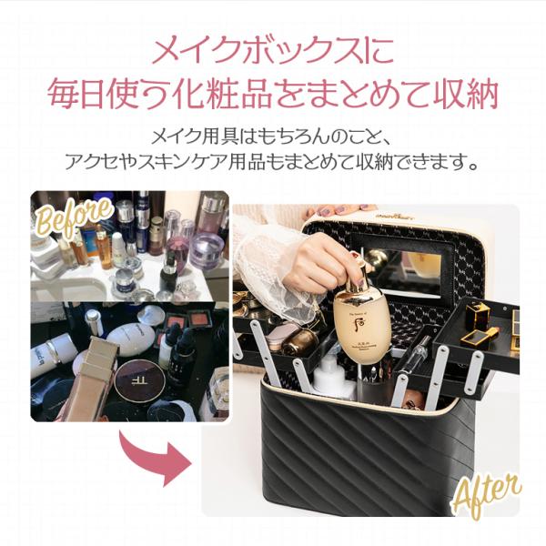 化粧用品やメイク道具がたっぷり収納できるメイクボックスです。