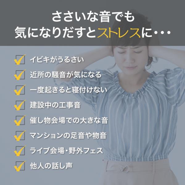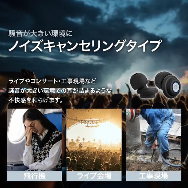 ライブやコンサート・工事現場など騒音が大きい環境での耳が詰まるような不快感を和らげます。