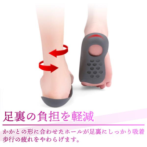 かかとの形に合わせたホールが足裏にしっかり吸着歩行の疲れをやわらげます。