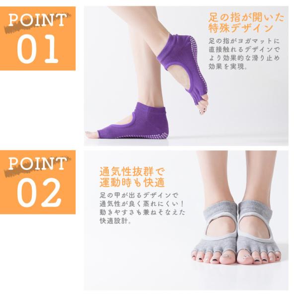 2足セット ヨガソックス 靴下 滑り止め 指なし 5本指 滑りにくい ウェア レディース ピラティス ホット トレーニングウェア スポーツウェア トレーニング ジム