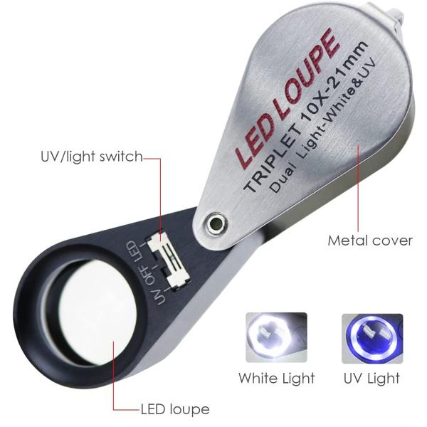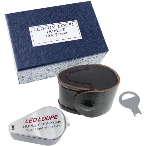 ルーペ 10倍 LED・UVライト付き トリプレット 精密 鑑定 宝石 プロ用 紫外線ライト 発光