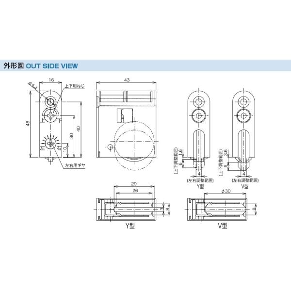 木製引き戸用 調整戸車 Y型