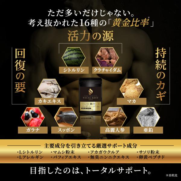 マカ シトルリン サプリ クラチャイダム アルギニン 亜鉛 黒生姜 サプリメント トレーニング 元気 滋養 サプリメント VITAL EDIT GOLD 90粒/30日分 送料無料