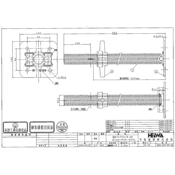 お買い得 12個セット パイプジャッキ L=600mm 自在型 HE-6S 平和技研