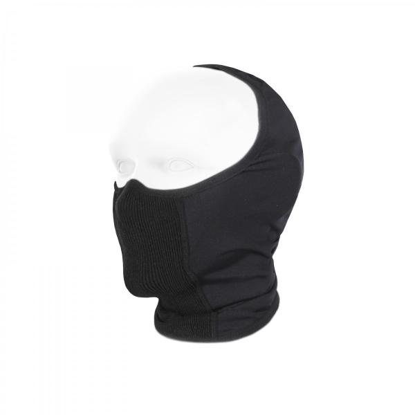 頭の部分はハーフバラクラバスタイル。マスクとバラクラバ(目だし帽)の中間的な位置づけでヘルメットの前部のすき間からの風が頭部に当たるよう設計され、バイクやサイクリングの半キャップヘルメット着用時、前部分の開口部から風を取り込み空気が流れ、汗がマスク内に籠もらず、湿度を下げる効果があります。