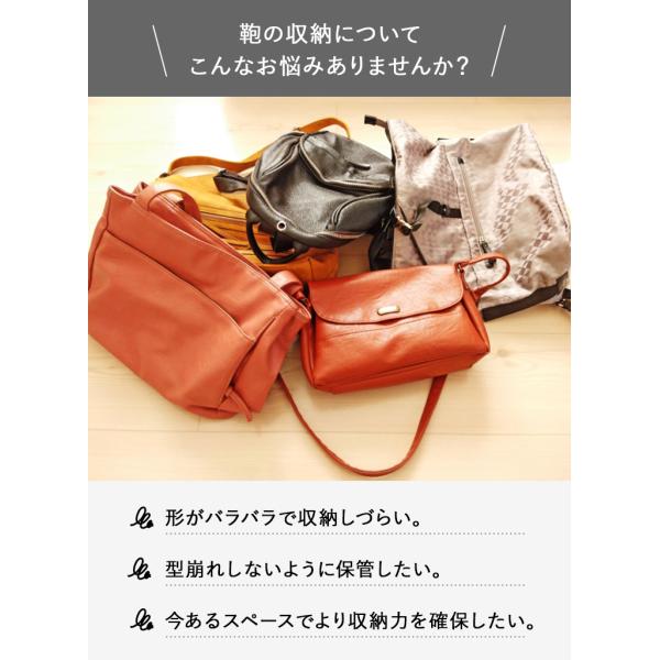鞄を立てて収納できるのでクローゼットの上でも鞄が見やすく、型崩れを防いでくれます。
