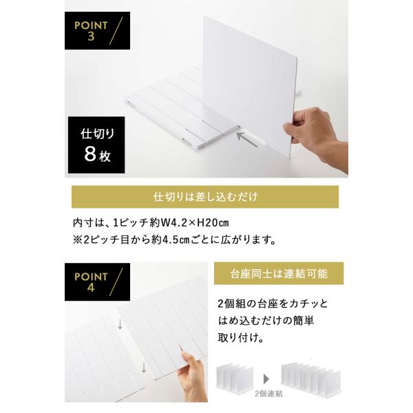 鞄のサイズに合わせて仕切り幅を調整できるバック収納スタンド。