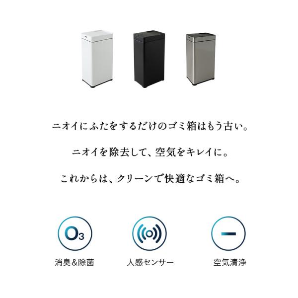 ゴミ箱 ダストボックス 45リットル 消臭 除菌 空気清浄 オゾン マイナスイオン 大容量 自動開閉 電動 スライド センサー ふた付き 角型 スクエア スリム ごみ箱 電池 お手入れ簡単 キッチン リビング 生ごみ おむつ ペット 42L 42リットル 高機能 送料無料 エムール