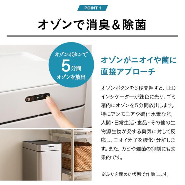 ニオイを除去して空気をキレイに。オゾン消臭機能付き電動ゴミ箱