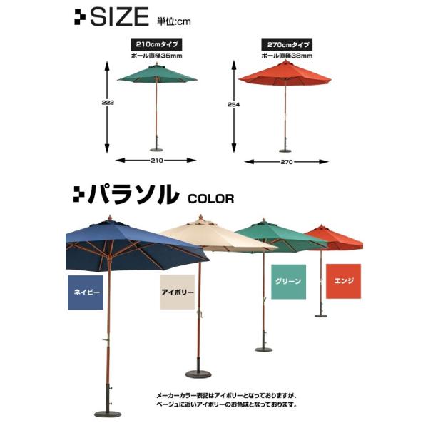 【送料無料】【パラソル210cmタイプ単品】ガーデンパラソル パラソル ビーチパラソル 傘 ガーデン イベント・バーベキュー・花見 ! 業務用 お店 軒先 海 アウトドア 日傘 木製パラソル グリーン ネイビー アイボリー エンジ ブラウン ライトグリーン パープル