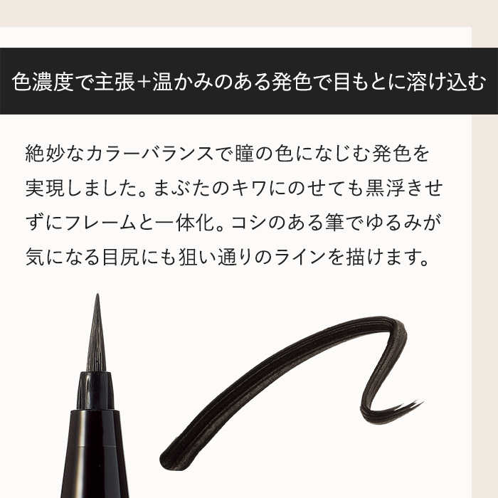 コシのある筆で目尻にも狙い通りに描けるリキッドアイライナー