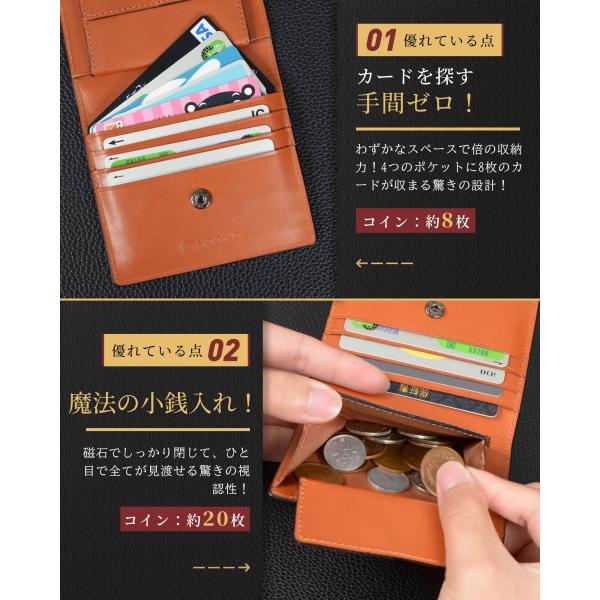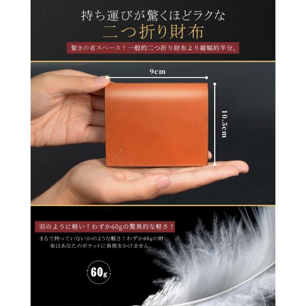Modiko 財布 メンズ 二つ折り 本革 栃木レザー ミニ財布 コンパクト 薄型 小銭入れ付き カード収納 軽量 シンプル おしゃれ ビジネス ギフト プレゼント