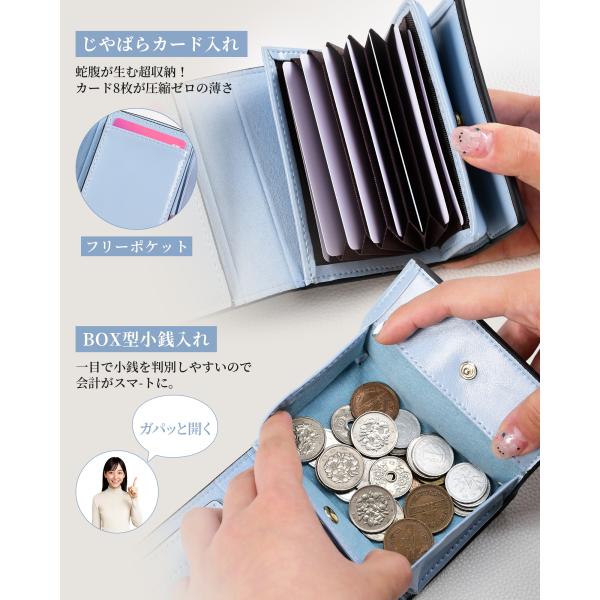 ★【じゃばら式カード収納】最大8枚収納可能なじゃばらポケットを採用し、視認性と取り出しやすさを両立。ICカード専用スロット付きで、日常使いも快適。