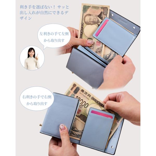 ★【折らずに収納できる札入れ】一万円札対応、左右どちらの利き手でも使いやすい設計。