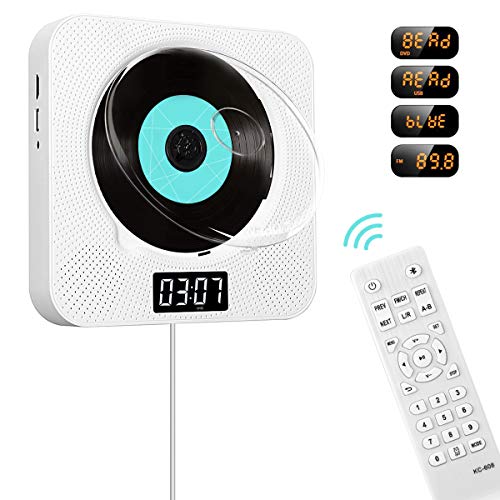 Pecen 870 view CDプレーヤー 置き&壁掛け式 1台多役 プルスイッチ式 Gueray 2020年最新版 Bluetooth USB対応 microSD LEDディスプレイ 新バージョンのリモコン付き 防塵カバー付き