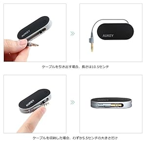 AUKEY BT-C1 bluetoothステレオオーディオトランスミッター 携帯オーディオプレーヤーの音楽を無線で楽しむ! Bluetoothに対応していない普通のパソコン、携帯電話、iPod、TV、CDプレーヤーや携帯型音楽プレーヤとつないで、 Bluetooth対応のスピーカーやヘッドフォンなどと接続できます。 音ズレがなく、高音質を実現 テレビ視聴の際に、音と映像に時間差が生じず快適に楽しめます。 寝静まった静かな夜でも、周りに音量を気にすることなく離れた所からでも音声や音楽を楽しむことができます。 Bluetooth未搭載のTVに最適です。 充電しながら使用可能 160mAhリチウムポリマーバッテリーを内蔵して、8時間連続使用可能です。 低エネルギー技術が使用されており、低消費電力を実現しました。 しかも、付属のUSBケーブルを使えば、充電しながら使用できます。 持ポケットに入れて持ち運べる 手のひらサイズで、ポケットに入れて気軽に持ち運べるミニサイズです。 また、収納式のプラグを採用していますので、ポケットに入れても邪魔しません。 10メートル送信 10メートルの信号範囲内、高速で流暢で安定に信号を伝送します。 高い性能を持っています。