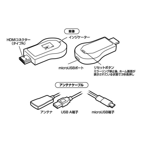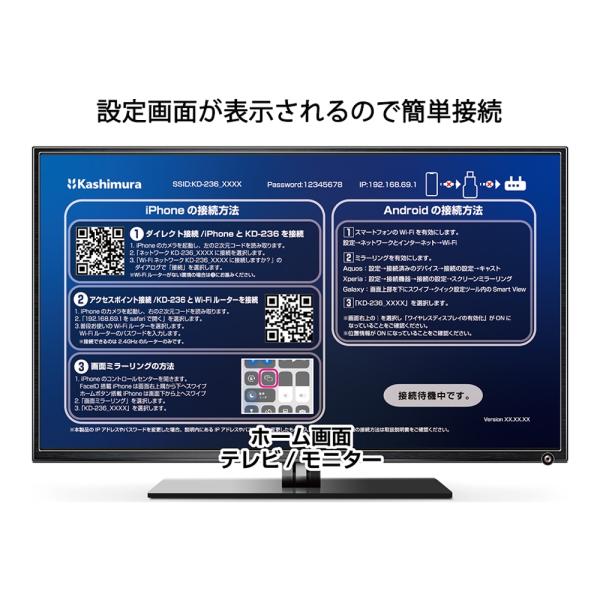 Miracastレシーバー HDMI 挿すだけ ワイヤレス iPhone対応 Android対応 カシムラ KD-236
